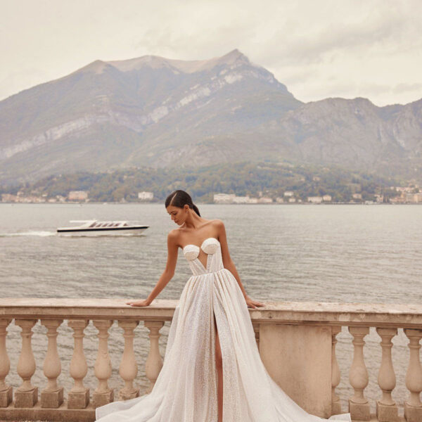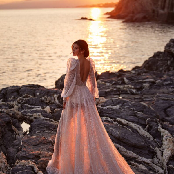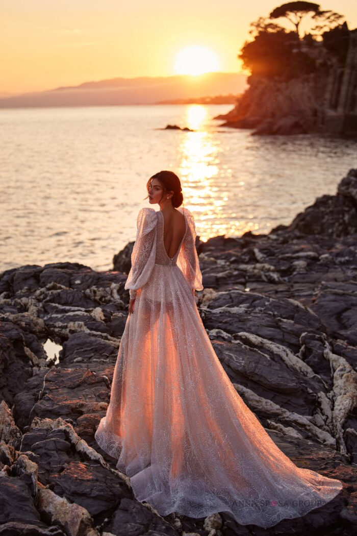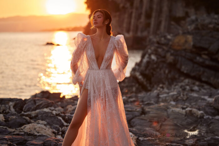 Anna sposa iconic style gown with lace tulle skirt and glitter,in ivory nude.