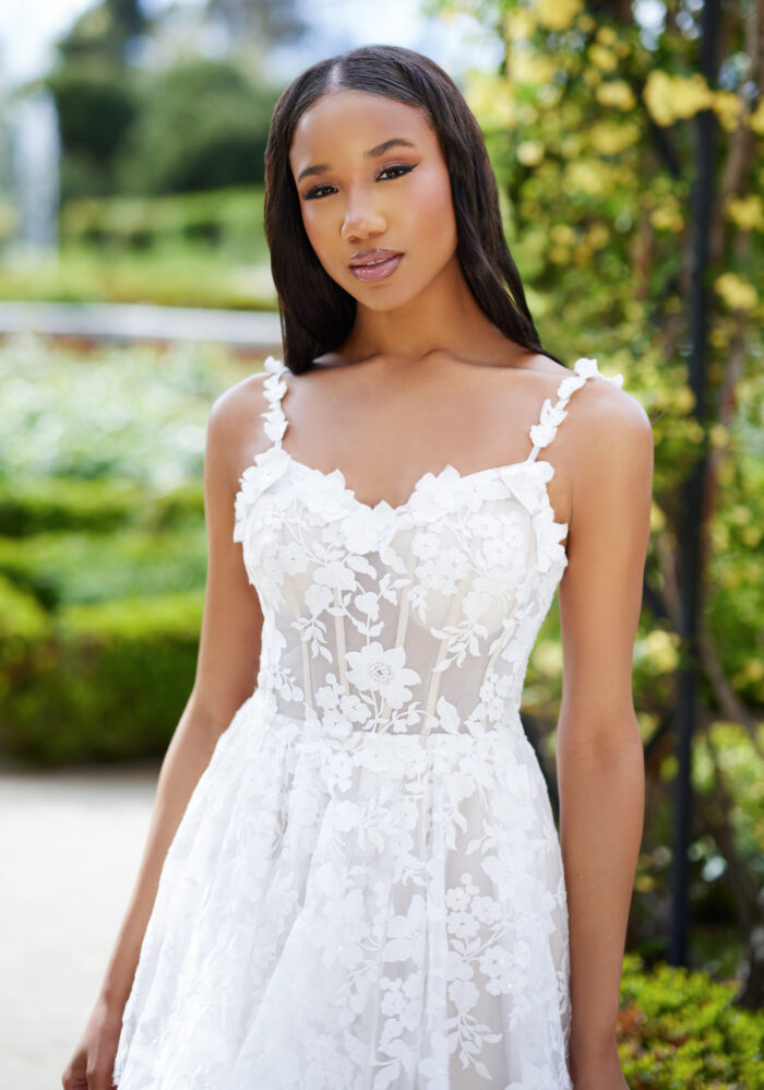 a beautiful mini dress with a beaded body lace sweetheart bikini neckline and lacing in the back